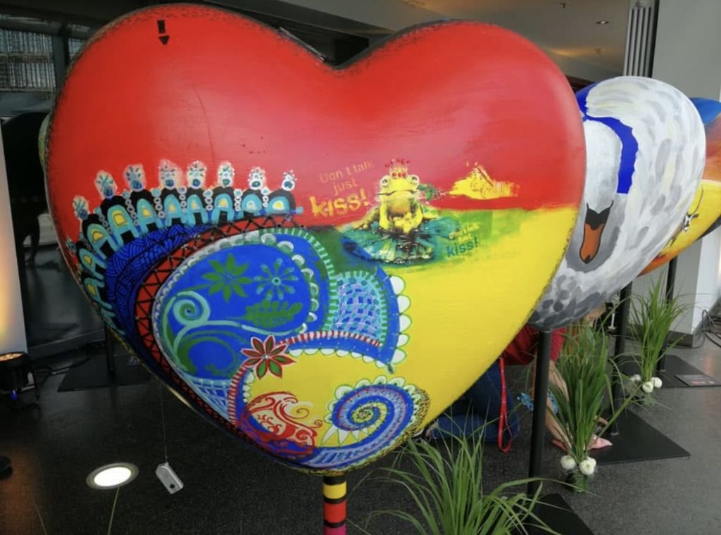Ein Kunstprojekt mit bemalten Holzherzen, inspiriert von der Arbeit für krebskranke Kinder. 18 weiße Herzen warten seit 2020 darauf, zu farbigen Unikaten gestaltet und für den guten Zweck versteigert zu werden.