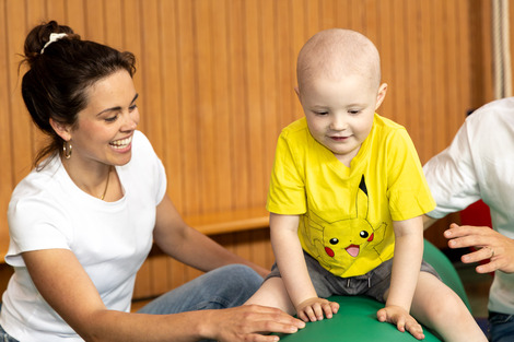 - In der Turnhalle: Für fittere Patient*innen mit Ballspielen, Trampolinspringen und mehr, betreut von sportpädagogischen Lehrkräften.
