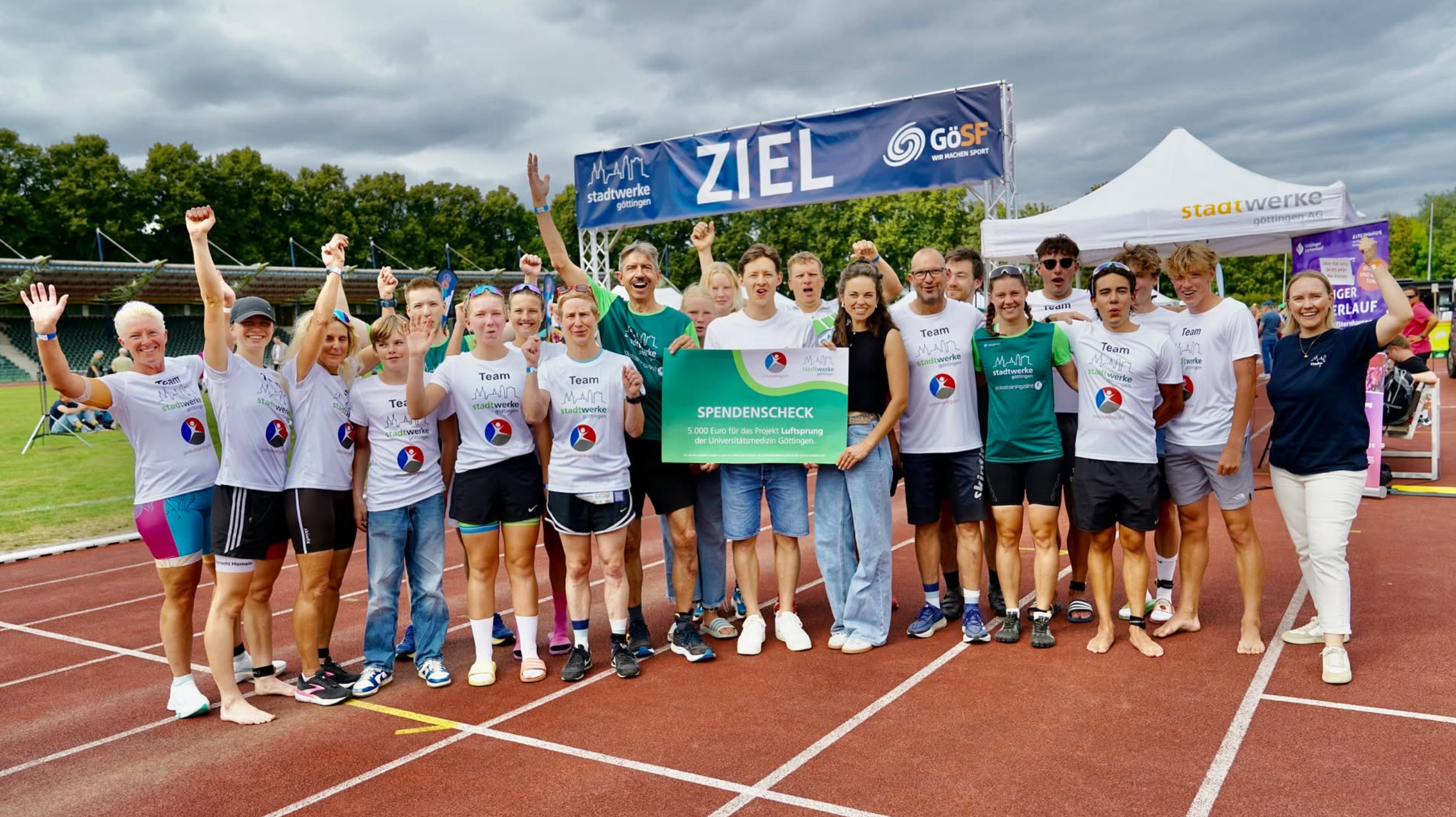 Wir haben den Triathlon auch dazu genutzt, einen Scheck in Höhe von 5000€ an „Luftsprung“ zu übergeben! Unsere langjährige Partnerschaft mit den Stadtwerken Göttingen ist mir eine besondere Freude.