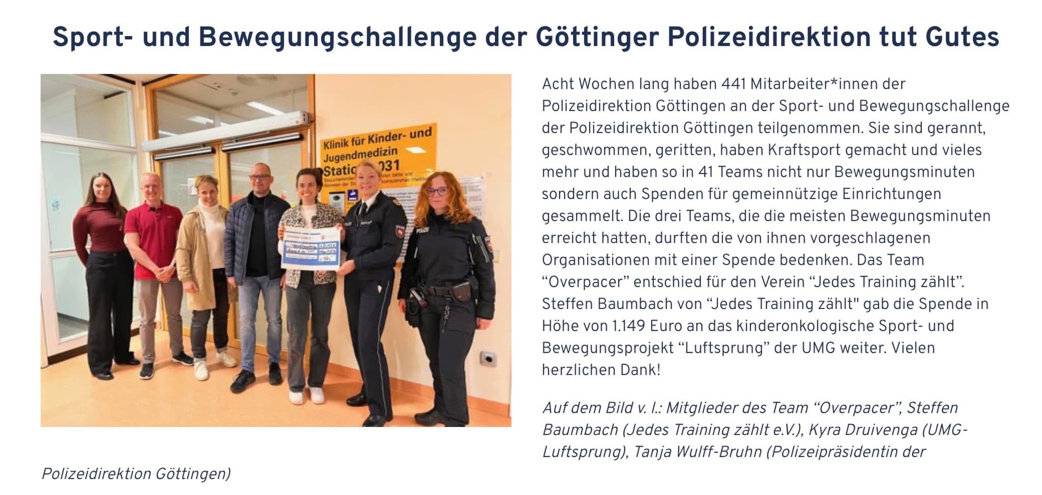 Eine Sportgruppe der Polizei spenden 1149 € an jedestrainingzählt!