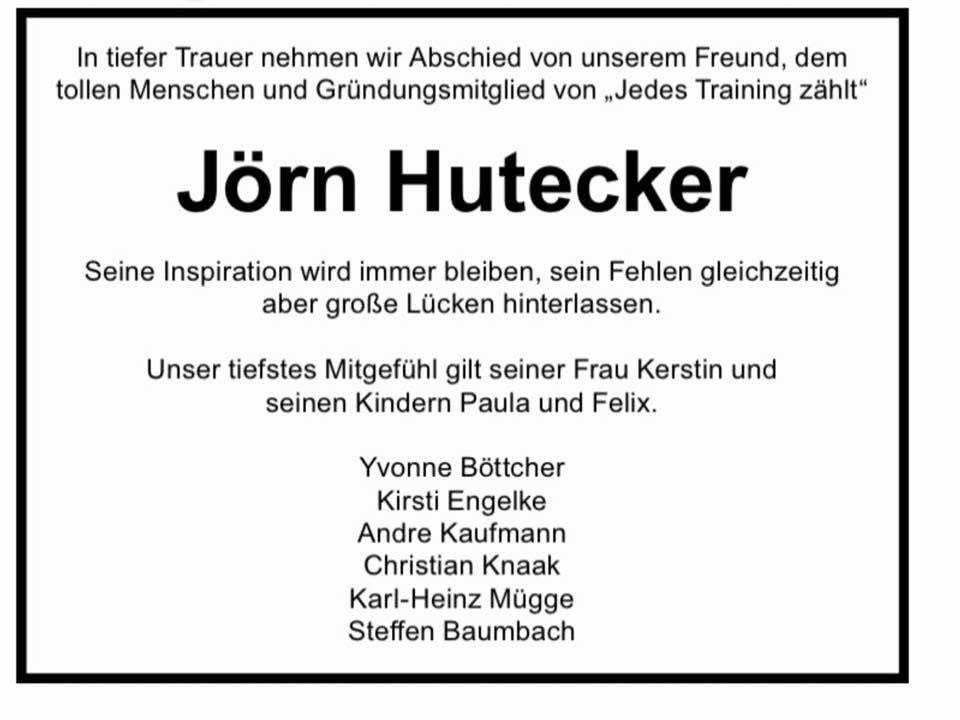 Mit Jörn Hutecker verliert der Verein Jedes Training zählt e.V. Ein Gründungsmitglied!