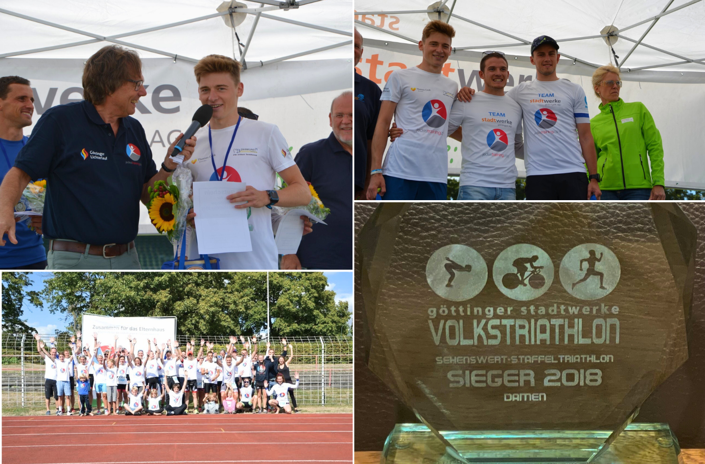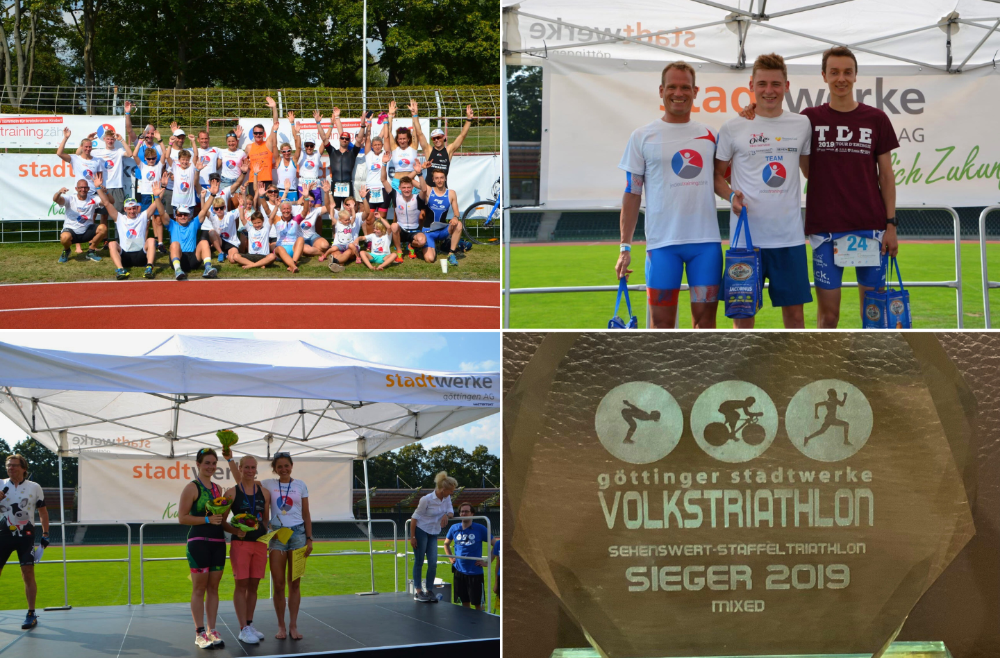 Beim Volkstriathlon starten wir mit 45 Athleten. Seit 2016 haben wir jedes Jahr die Mannschaftwertung gewonnen. Dieses Jahr mußten wir uns der Mannschaft des ASC Göttingen geschlagen geben und sind gutes zweites Team geworden! Besonders herausheben möchte ich den dritten Platz von Mira Hippe in der Damenwertung. Mir ist erst ein paar Monate vorher Mama geworden!