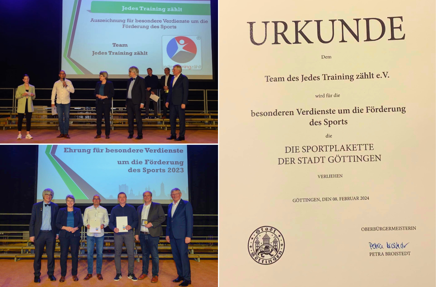 Jedestrainingzählt bekommt für „besondere Verdienste um die Förderung des Sports“ die Sportplakette der Stadt Göttingen verliehen!